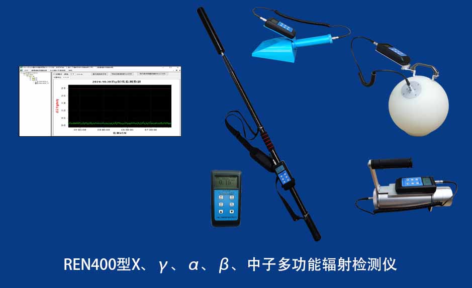 • REN400 多功能射線(xiàn)劑量?jī)x REN400型多功能輻射檢測(cè)儀是以?xún)?nèi)置高靈敏度蓋格計(jì)數(shù)管為探測(cè)器,外接不同類(lèi)型的探頭來(lái)實(shí)現(xiàn)對(duì)低劑量χ、γ射線(xiàn),高劑量χ、γ射線(xiàn),α、β射線(xiàn)和中子射線(xiàn)的檢測(cè)。作為多功能輻射巡測(cè)儀,能顯示工作場(chǎng)所的輻射值,自動(dòng)連續(xù)測(cè)量和記錄280萬(wàn)條輻射劑量率數(shù)據(jù),更換電池時(shí),日歷、時(shí)間及檢測(cè)數(shù)據(jù)能永久保存。工作人員可以任意設(shè)定報(bào)警值,超閾值后自動(dòng)發(fā)出聲音、震動(dòng)和光報(bào)警。多功能輻射檢測(cè)儀適用于核設(shè)施、核技術(shù)應(yīng)用單位、廢舊鋼鐵、防化部隊(duì)、 加速器、同位素應(yīng)用、工業(yè)X、γ無(wú)損探傷、放射醫(yī)療、鈷源治療、γ輻照、放射性實(shí)驗(yàn)室的輻射場(chǎng)