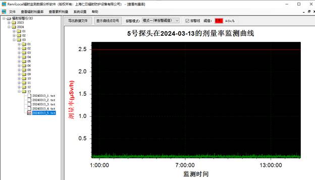 6、數(shù)據(jù)分析:免費(fèi)提供功能強(qiáng)大的RenLocal輻射監(jiān)測(cè)數(shù)據(jù)分析軟件,可通過(guò)曲線和棒狀圖的形式分析歷史劑量率和累積劑量數(shù)據(jù)以及實(shí)時(shí)查詢報(bào)警數(shù)據(jù)與統(tǒng)計(jì)分析等